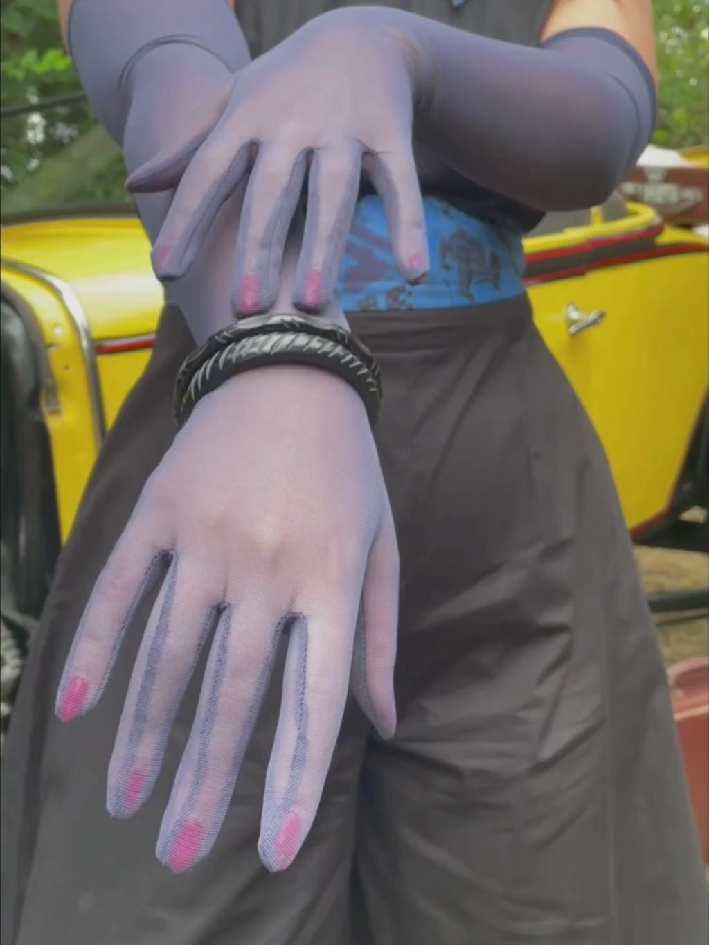 The appeal of gloves lies in their ability to transform an outfit instantly. Pair long black sheer gloves with a little black cocktail dress for timeless chic, echoing Audrey Hepburn’s Breakfast at Tiffany’s. Choose champagne mesh opera length gloves for bridal elegance or romantic evenings. Or, for something bolder, the Remus mesh long gloves add a pop of colour while still referencing mid-century glamour.