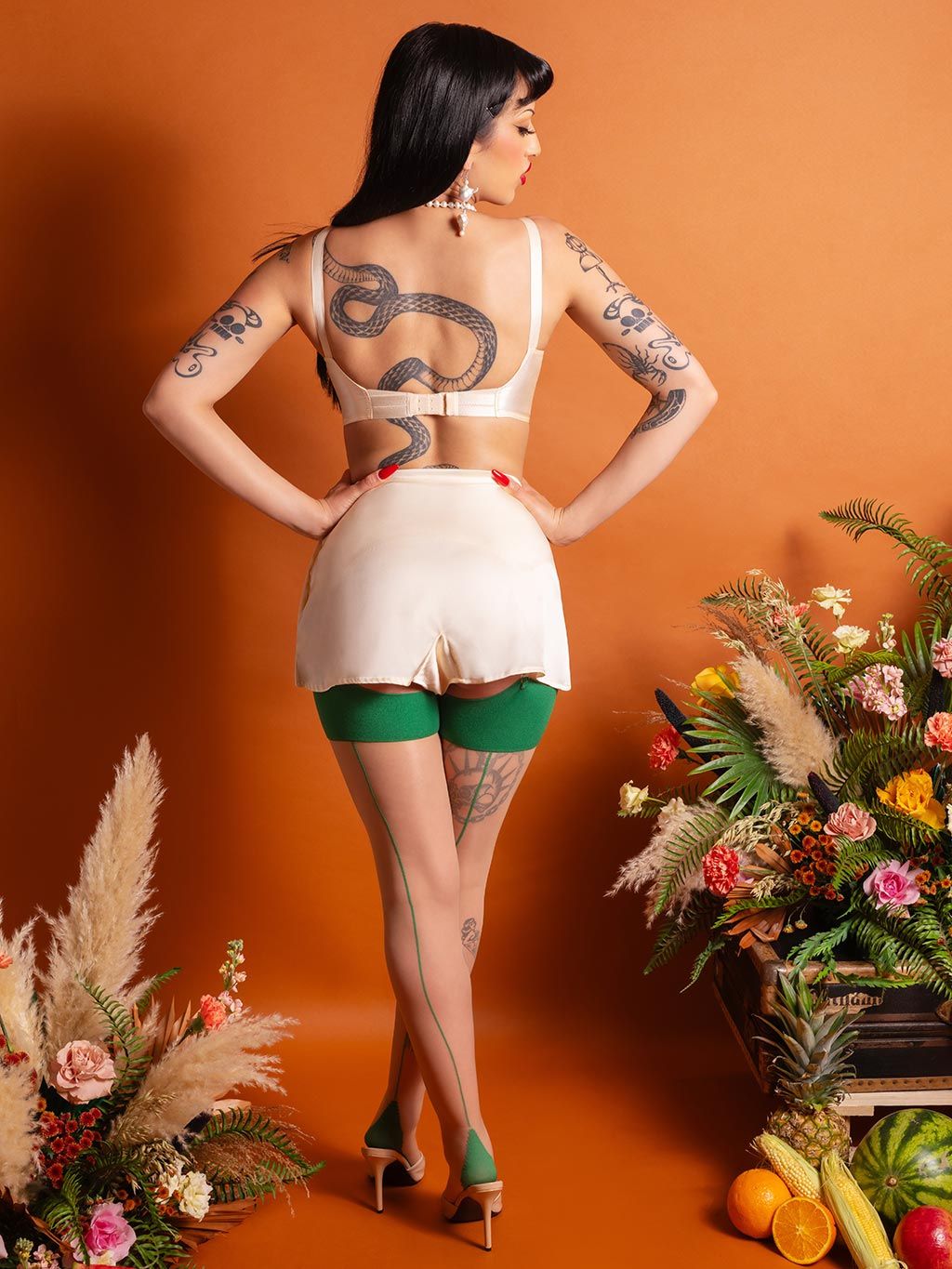 More is definitely more when it comes to old school glamour! Most of our retro style knickers are designed to finish towards the natural waistline, or on the waist itself. A high-waist knicker ensures a smooth line under clothing, and as our knickers incorporate corsetry powermesh, they will offer a little support too.